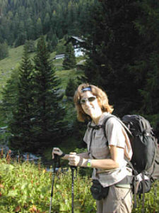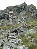 direction. The fog turned into a light mist and then a light drizzle. First chance to test our rain gear! Pack covers and ponchos kept us reasonably dry, but in the fog it seemed as if the downhill was never going to end. Peeralm hut was filled for tonight, so we continued on to the Liesenhof. Ahhhh...what a wonderful place! Franz and Dettie Halder, the owners of this working farm plus guesthouse, welcomed us like family. |