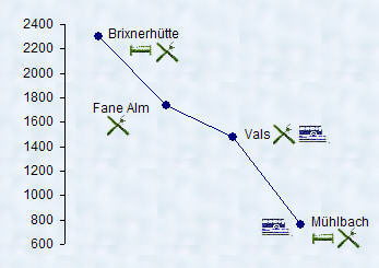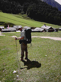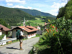 In Mühlbach we walked towards the church (there is always a guesthouse near the church in alpine towns) and soon had met the proprietor of the 'Weisse Lilie' who led us to a beautiful room with a view of the church square. We walked around town and later took our dinner in the hotels restaurant: huge servings of wonderful food, but we could not finish our plates, possibly because we had filled our plates too generously at the salad bar! | |