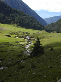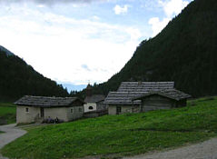 Easy 4.5 hour stage with long downhill, the paved road between Fane Alm and Vals can be avoided on a new path to the side of the road. There is also a 'hut taxi' that travels several times an hour between Vals and the parking area near Fane Alm. Below Vals, a short section has to be walked on the road, then the new road goes to the right, while the old road (closed to traffic) goes steeply down to the left side. | ![]() |