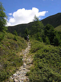 An easy 4 hour uphill walk on path #4. Well marked, but not vere frequented. Many people choose to take the gondola to Kreutztal and walk from there (about 1.5 hours). | ![]() |