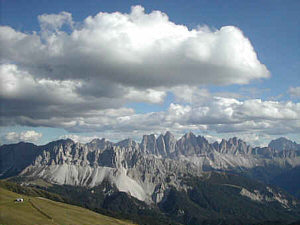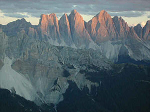 we reached the top of the pass, and then in the evening, the mountains glowed! The Dolomites owe their name to the Frenchman Déodat de Dolomieu (1750- 1801) who to describe the chemical composition (stratified calcium magnesium carbonate) that renders this rock so different from all the rest. |