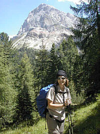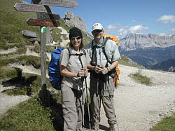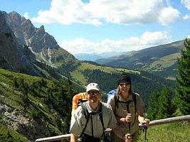 times. The Schlüterhütte ultimately appeared in front of us, once we got there we were glad we had called ahead for reservations as the dining rooms were packed. We shared a table with Ralf, a friendly man from Bozen who was also hiking the Alta Via II for a few days. |