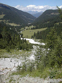 Before long we reached the Halslalm, a lunch station with pretty views of the valley. The Kofeljoch (Passo Rodella) seperates the Plose from the Peitlerkofel mountains. This is also where the Puez - Odler National Park starts. |