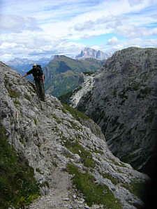 some cabled sections here. Many hikers choose to avoid this segment by walking an alternate route via the Passo Rollo. |
