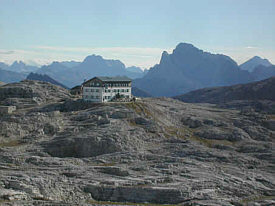 rifugio in the distance. The Rifugio Rosetta Pedrotti is a popular day hike